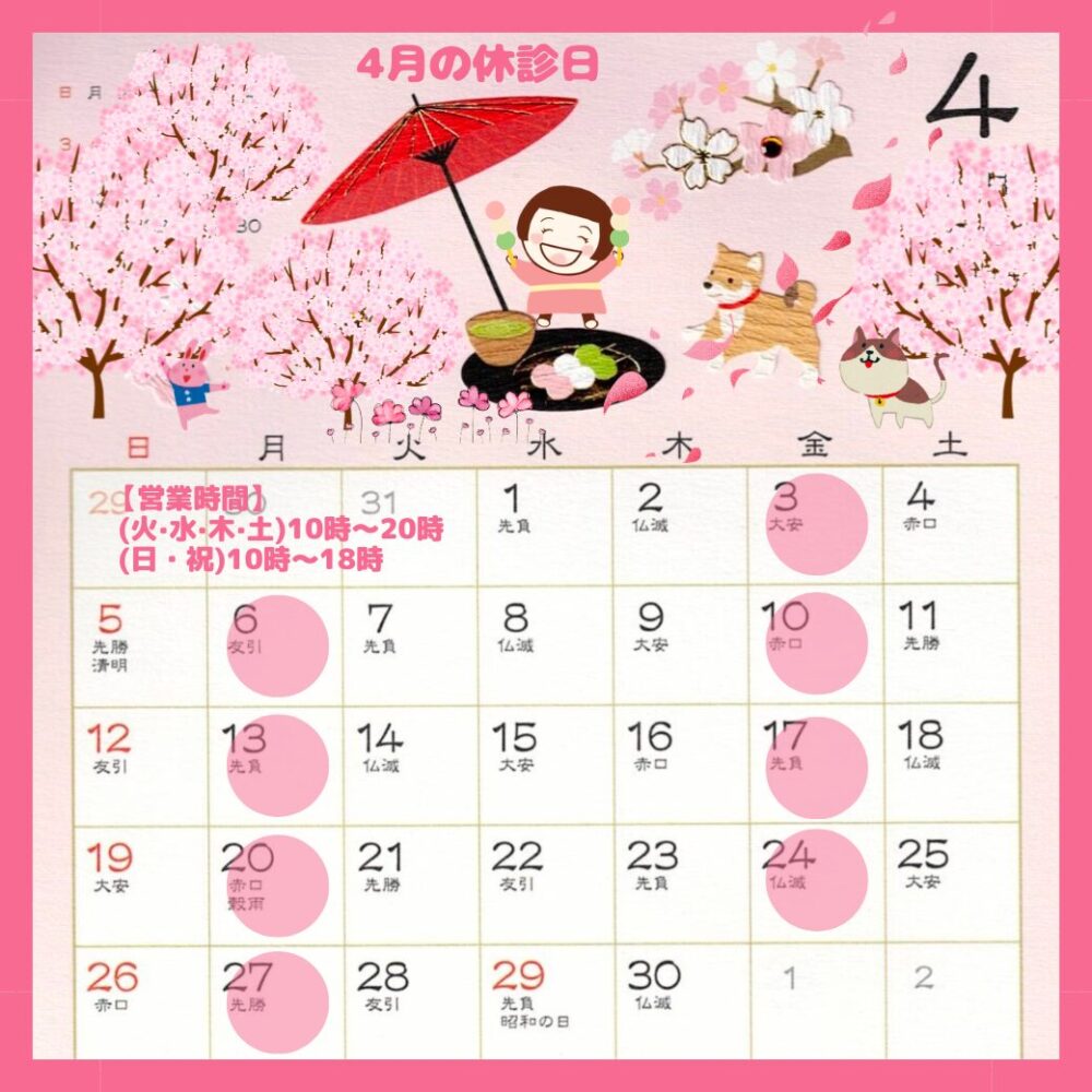 今月の休診日〜土日祝やってます^^